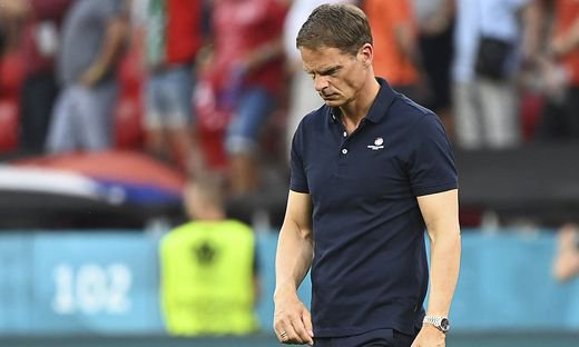 Netherlands' manager frank de boer (center) holds his head after the euro 2020 soccer championship round of 16 loss to the czech republic sunday, june 27, 2021, at the ferenc puskas stadium in.